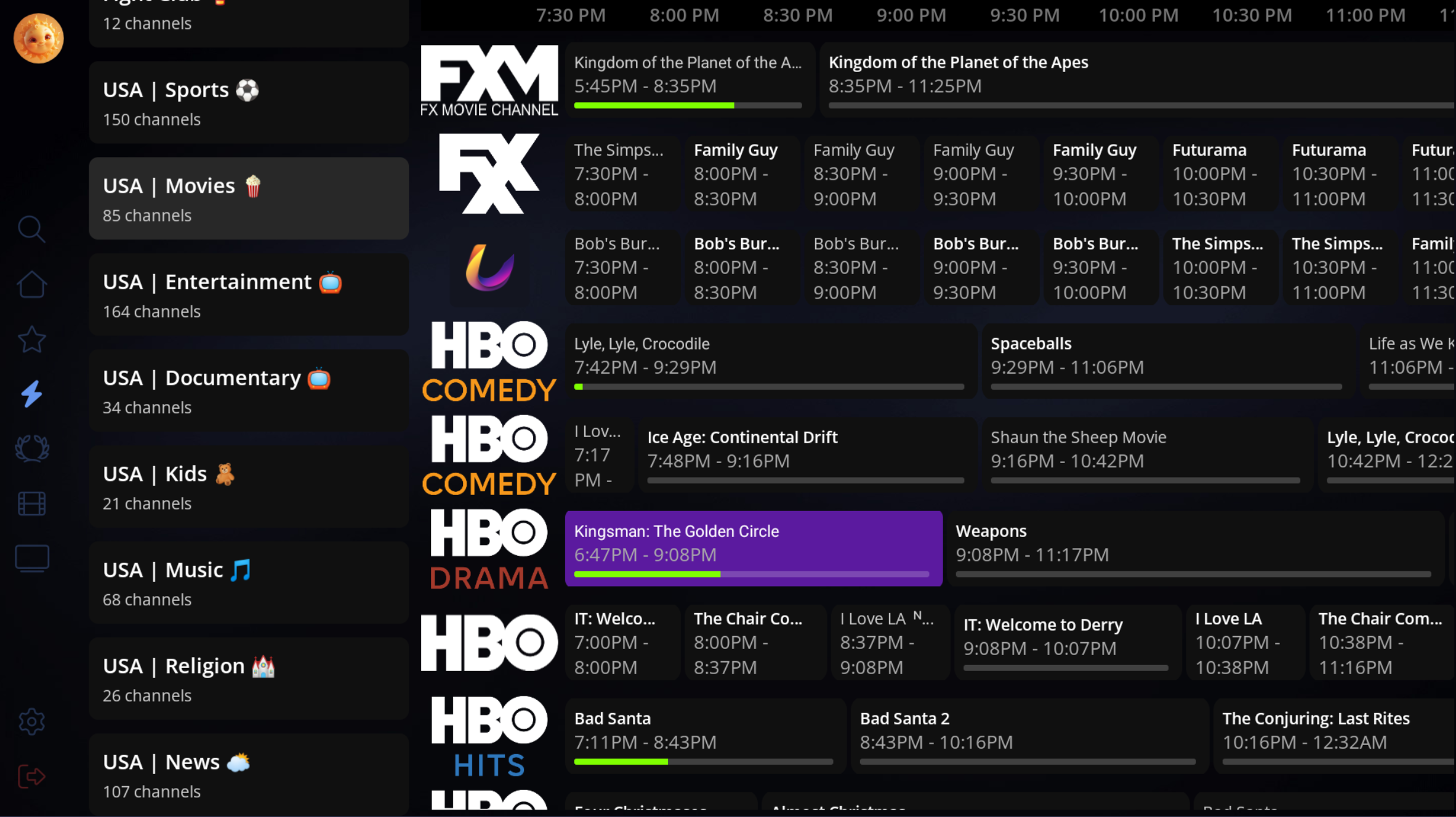 • Full Screen Grid Style Epg